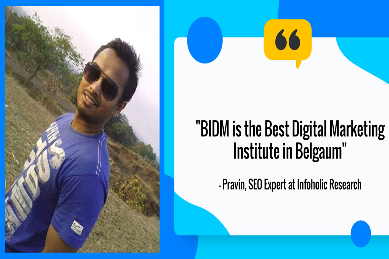 Rahul Joshi"If you have digital marketing course to do on your mind. Trust me there is no better institute than BIDM. They are simply the best in the city.This is the best institute in Belgaum to gain knowledge on Digital Marketing, SEO, PPC, SEM and many more. Joining BIDM for Digital Marketing Company was one of the best decisions I have taken".
